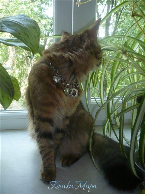 Гламурный котик в оранжерее на окне!