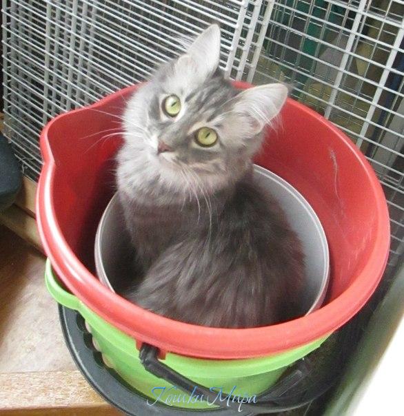 Кот в мешке? Нет, кошка в ведре!