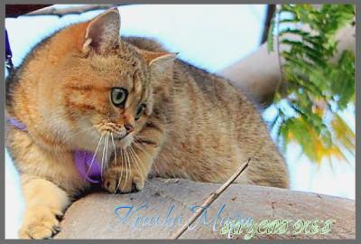 Золотая британская кошка Анфиска на прогулке