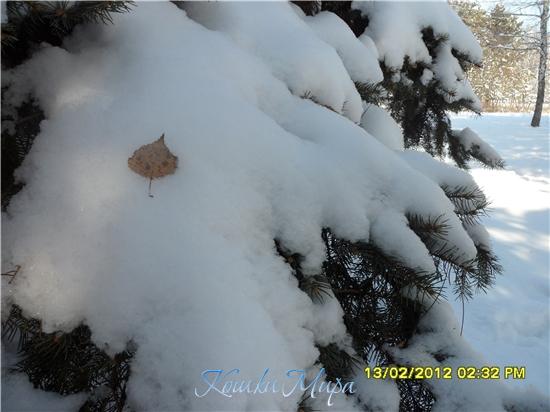 Желтый листик на белом снегу...