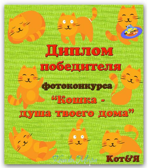 Диплом победителя фотоконкурса «Кошка - душа твоего дома»