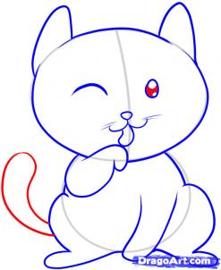 Далее рисуем ротик и усы у киски.