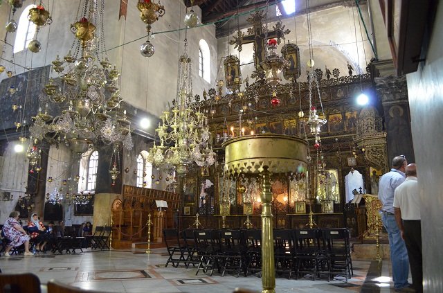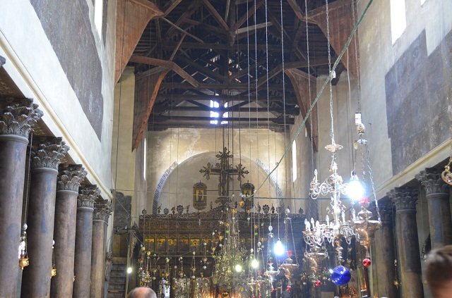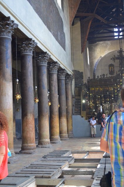 Своды Храма Рождества Христова поддерживают сорок четыре мраморнные колоны , на которых изображены лики святых и пророков, выполненные уникальной техникой писания маслом и последующей полировкой поверхности до блеска. Подобная техника живописи больше нигде не встречается на Святой земле. На колоннах Храма Рождества Христова можно увидеть изображения Иоана Крестителя, пророка Илии, Георгия Победоносца и других святых.